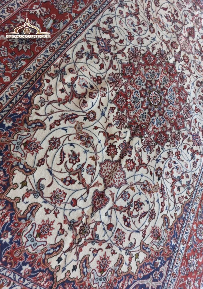 Experience the elegance of this Persian Silk Carpet. The classic medallion centerpiece adds a timeless charm, while the detailed border showcases exquisite craftsmanship.